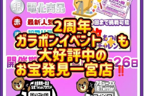 TikTok更新しました!2周年ガラポンイベント✨も大好評中のお宝発見一宮店‼️